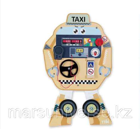 Робот - такси (Бизиборд) 35.4*58.4cm – это деревянная доска с различными элементами для развития мелкой моторики и мышления ребенка, способствует развитию моторики и логики у детей.